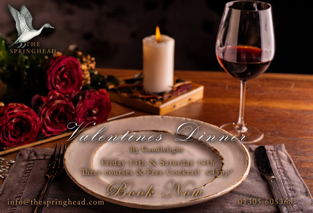 Valentines Dinner by Candlelight - Bring your special someone for a romantic candlelit dinner. ❤️ Three Course dinner + Free Hugo Spritz or Negroni Available from 5pm Friday 13th & Saturday 14th Feb Book now 01305 506368 info@thespringhead.com www.thespringhead.com