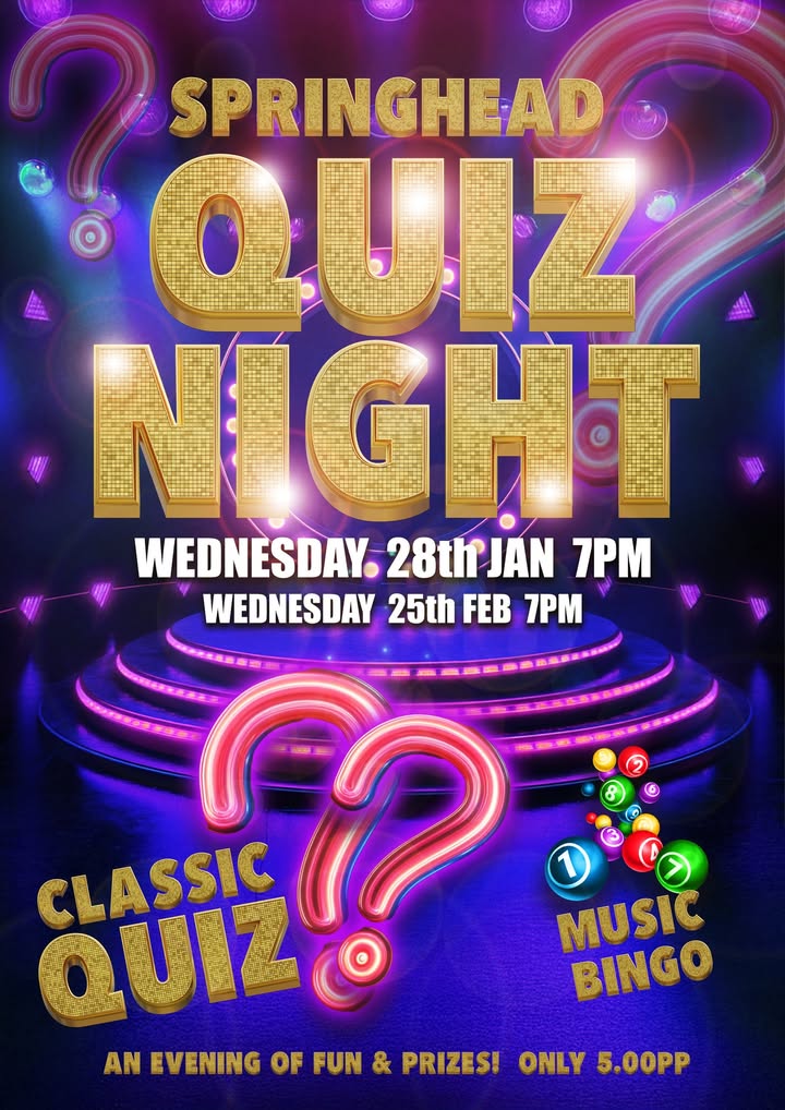 QUIZ NIGHT! Book your teams now! info@thespringhead.com 01305 605368 Kicking off 2026 with a fun evening including your favourite taste round & mystery round! Plus it's supper club! so why not grab dinner while you are here at a discount!
